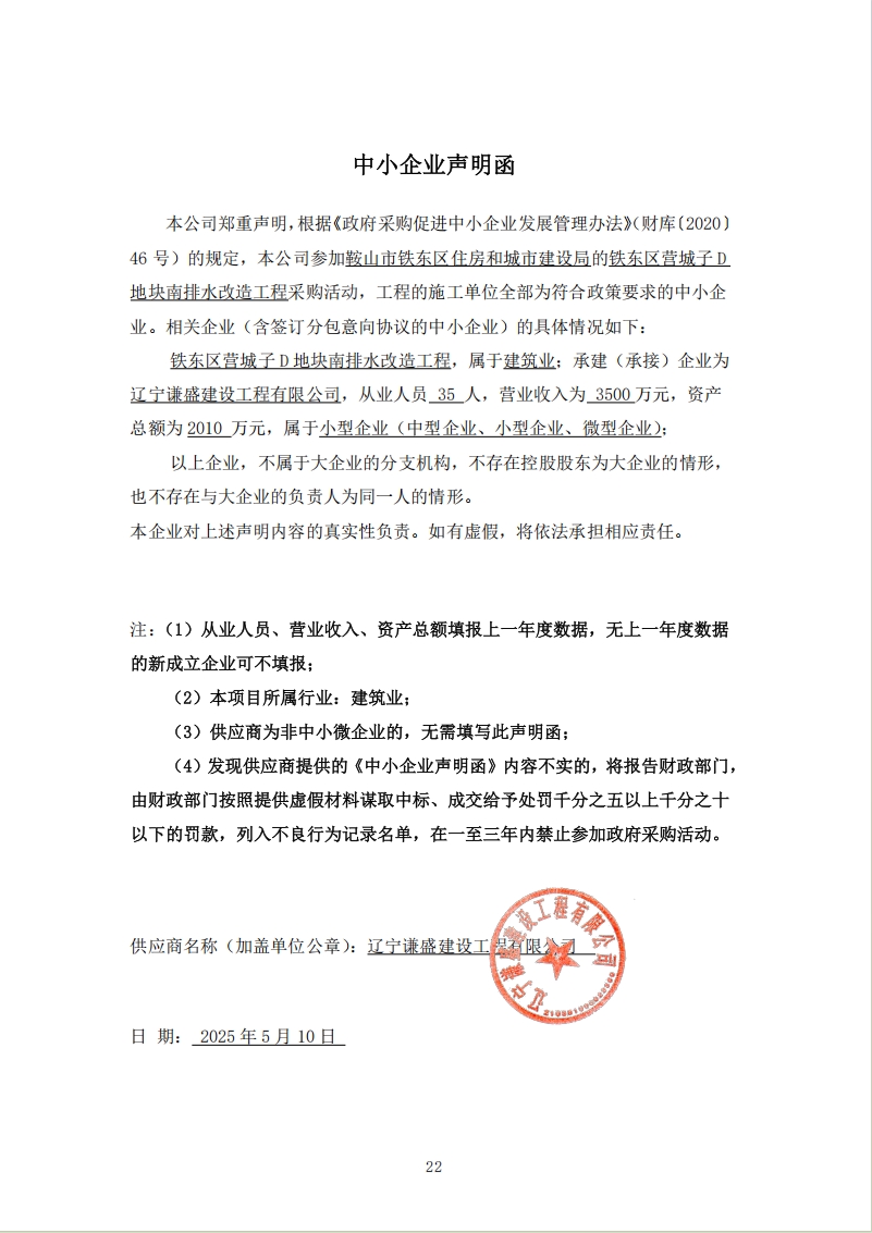 采购文件:定稿-铁东区营城子D地块南排水改造工程