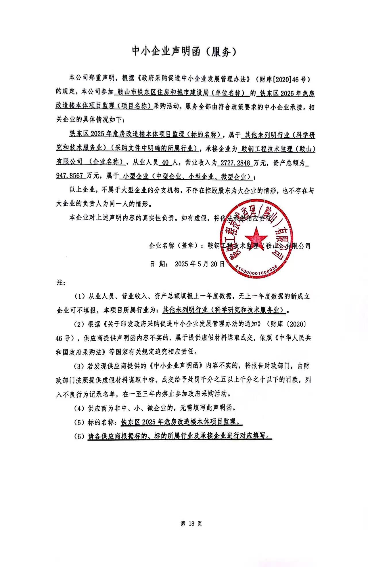 供应商名称:鞍钢工程技术监理(鞍山)有限公司